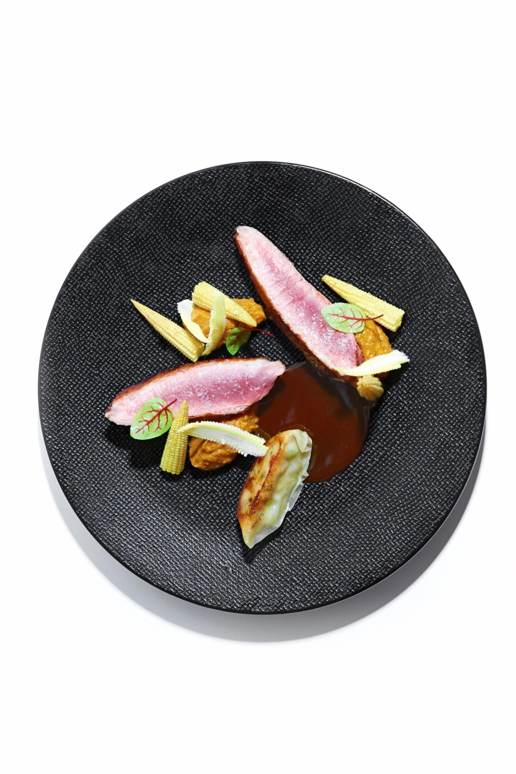 CANETTE RÔTI, CRÈME DE CAROTTE, JUS COURT ET GYOZA VEGGIE